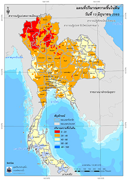 ค่าความชื้นในดิน วันที่ 13 มิถุนายน 2565 (Map, Shapefile)