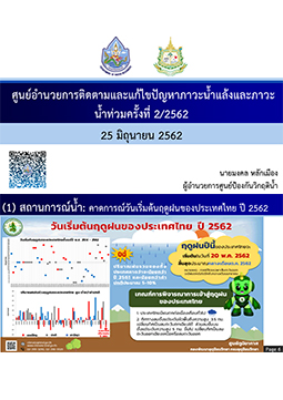 การประชุมศูนย์อำนวยการติดตามและแก้ไขปัญหาภาวะน้ำแล้งและภาวะน้ำท่วม ครั้งที่ 2/2562 วันที่ 25 มิถุนายน 2562