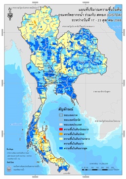ONEMAP ค่าความชื้นในดินกรมทรัพยากรน้ำ ร่วมกับ GISTDA ระหว่างวันที่ 17 - 23 ตุลาคม 2566 (Map, Shapefile)