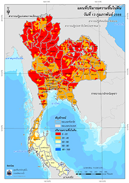 ค่าความชื้นในดิน วันที่ 13 กุมภาพันธ์ 2566 (Map, Shapefile)